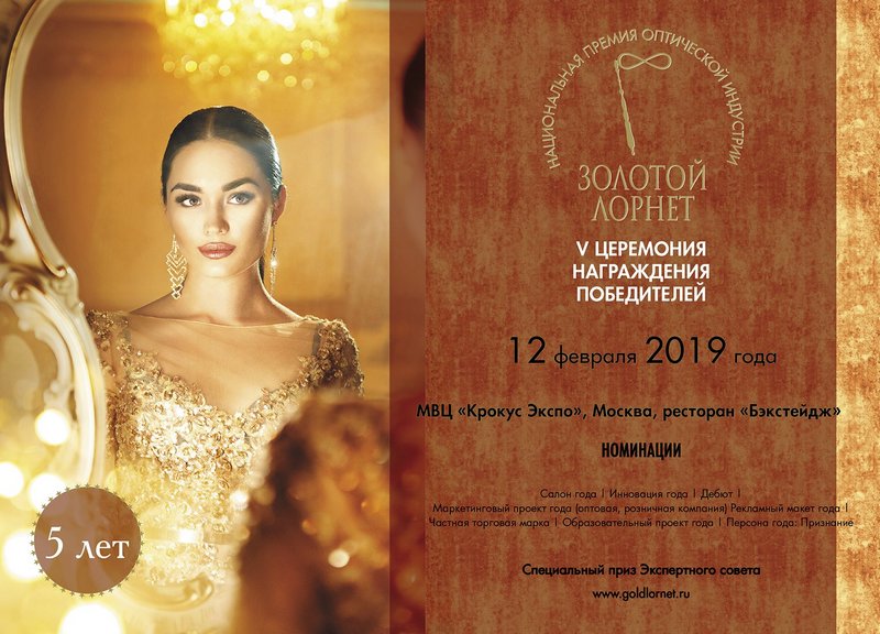 Пятая, юбилейная церемония награждения Национальной премией оптической индустрии «Золотой лорнет» пройдет в рамках Московской международной оптической выставки MIOF