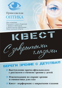 2. В 2018 году сотрудники сети салонов «Оптика Приволжская», г. Нижний Новгород, запустили образовательный социальный некоммерческий проект по популяризации гигиены и охране зрения среди школьников в Нижнем Новгороде и Нижегородской области. Цель проекта — мотивировать детей меньше времени проводить в гаджетах, заниматься спортом и беречь здоровье глаз. Образовательный проект сделан в виде квеста с закрытыми глазами. Его идея — показать школьникам, как живется людям, которые по разным причинам потеряли зрение. Квест уже прошли 1500 школьников из 2-10 классов.
